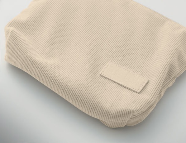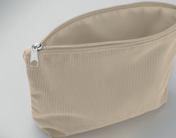 Stijlvol én praktisch: dit cosmeticatasje van zacht polyester ribfluweel heeft een stevige polyester voering van 220 g/m². Perfect voor make-up, verzorgingsproducten of kleine essentials – en natuurlijk te bedrukken met jouw logo voor een persoonlijk of promotioneel tintje.