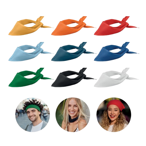 Deze multifunctionele driehoekige bandana is dé finishing touch voor jouw event of team. Draag ’m om je nek, in je haar of aan je tas – alles kan. Laat ’m personaliseren met jouw logo of design en maak er een echte statement piece van.