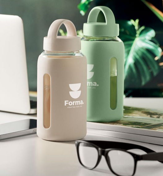 Blijf stijlvol gehydrateerd met deze glazen drinkfles van 600 ml. De fles is gemaakt van sterk borosilicaatglas en heeft een siliconen hoes voor extra grip. Dankzij de dop met handig draaghandvat neem je hem makkelijk overal mee naartoe. Verkrijgbaar in meerdere kleuren en te personaliseren met jouw logo op de siliconen hoes – perfect als opvallend relatiegeschenk!