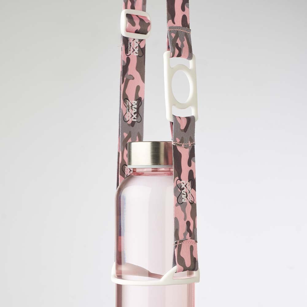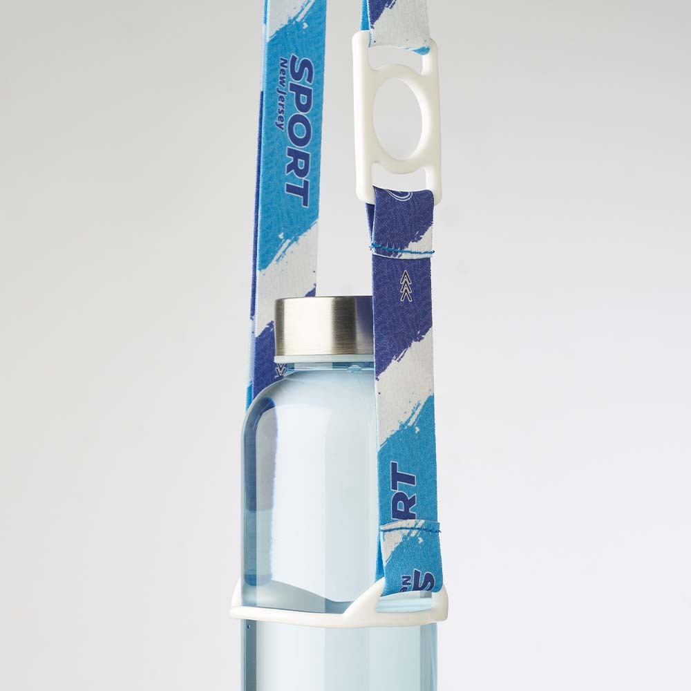 Verstelbare gesublimeerde crossbody-houder voor flessen en waterflessen, bedrukt in full color aan beide zijden.