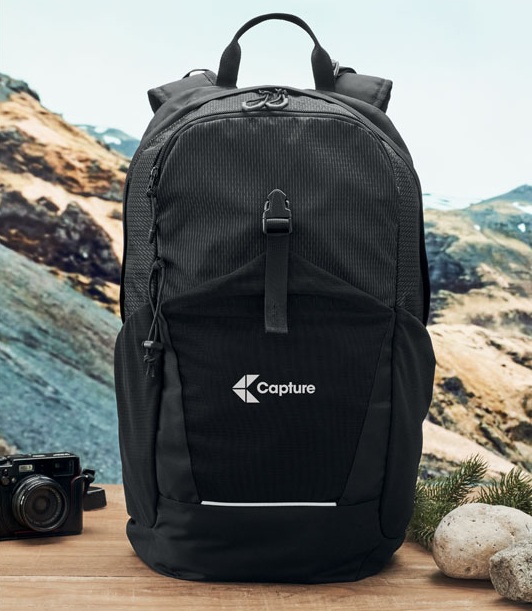 Klaar voor elke hike of werkdag onderweg! Deze 18L hiking rugzak van waterafstotend 420D nylon heeft een reflecterende streep voor extra zichtbaarheid. De tas is voorzien van een binnenvak voor een 15 inch laptop, een voorvak met rits en een extra voorvak met gespsluiting. Met twee zijvakken, gewatteerde rug- en schouderbanden en een ventilerende achterkant draag je hem altijd comfortabel. Te bedrukken met jouw logo – praktisch én opvallend.