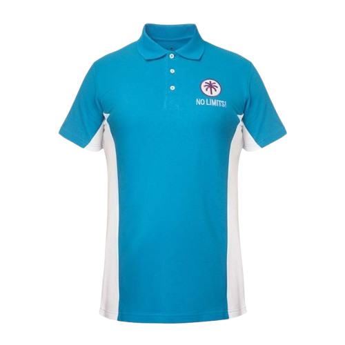 Gepersonaliseerde Polo met contrasterende kleuren op de mouwen en zijkanten.