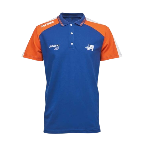 Gemaakt van 100% gekamd piqué katoen van ca. 190 g/m². Rib 1X1 kraag en zelfgemaakte manchetten. Verstevigingsband in de nek en 3 knopen op de sluiting en 1 reserveknoop op de binnennaad. Waslabel in de zijnaad genaaid.