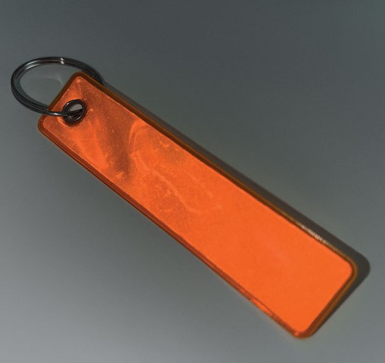 Gemaakt van hoogwaardig PVC en verkrijgbaar in oranje en geel, valt deze sleutelhanger direct op.