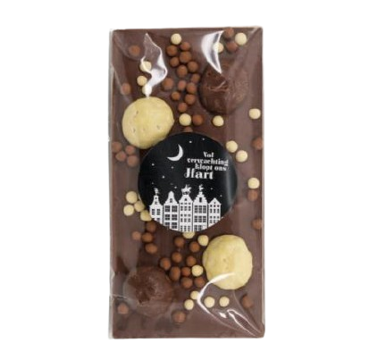 Heerlijke Sintreep van melkchocolade, feestelijk versierd met knapperige kruidnoten. Een leuke, lekkere traktatie voor in een schoentje, pakket of als klein relatiegeschenk dat gemakkelijk via de brievenbus te verzenden is!