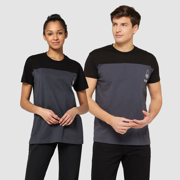 Gemaakt van 100% gekamd katoen, single jersey in ca. 155 g/m². Met zijnaden, halsboord met elastaan en verstevigingsband in de nek. Waslabel in de zijnaad genaaid.
