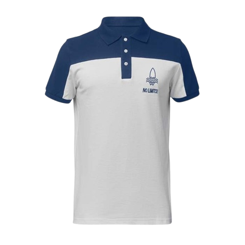 Gemaakt van 100% gekamd piqué katoen van ca. 190 g/m². Rib 1X1 kraag en manchetten, verstevigingsband in de nek en 3 knopen op de sluiting en 1 reserveknoop op de binnennaad. Waslabel in de zijnaad genaaid.