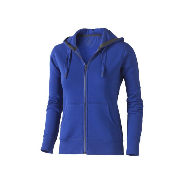 Full zip hooded sweater. 2×2 rib gebreide panels- manchetten en tailleband.kangoeroezak. Heren- en damesmodel met koord in de capuchon. Single jersey voering aan binnenkant capuchon. Half moon in dezelfde stof. Satijn nektape. Contrast gekleurde visgraat tape aan binnenzijde van capuchon. Tonaal logo op achterzijde. Antieke zilveren nestels met gegraveerd logo. Geborstelde binnenzijde voor een zacht- warm en comfortabel gevoel.
