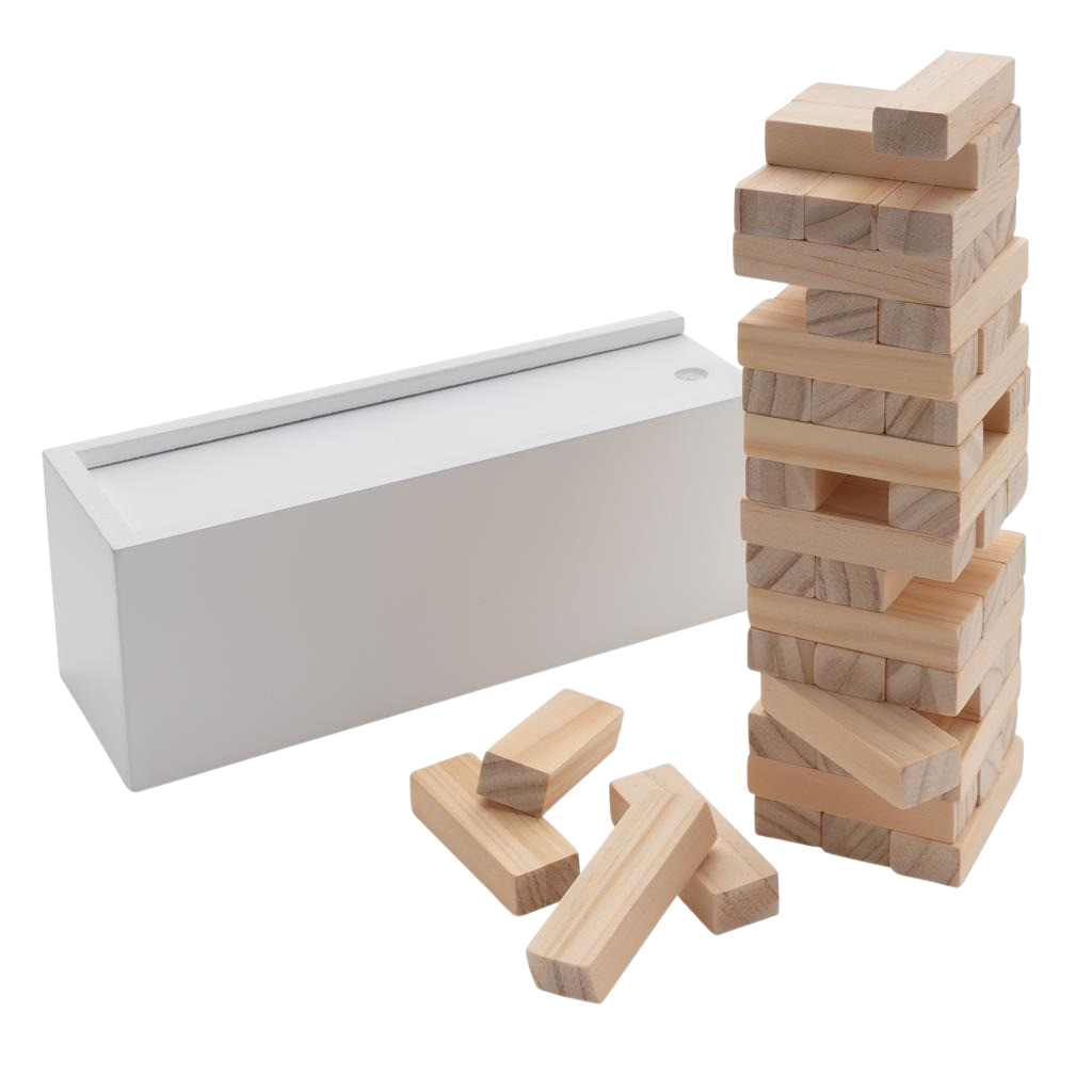 Hoe hoog kun jij gaan? Zie hoe hoog je de houten blokken kunt stapelen voordat ze omvallen met dit leuke vallende torenspel. De 48 blokken zijn gemakkelijk op te bergen in de meegeleverde schuifdoos. Komt in full colour doos.