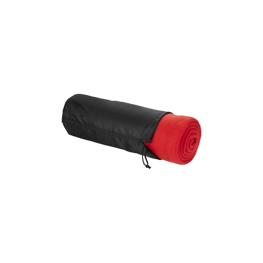 Fleecedeken in hoes, leverbaar in vele kleuren.