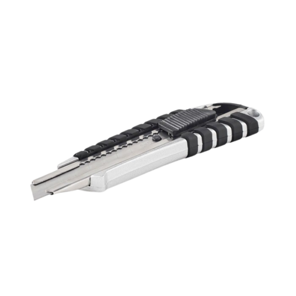 Aluminium uitschuifbaar mes met 8 koolstofstalen afbreekbare delen. Trek het mes in en vergrendel het wanneer het niet in gebruik is voor de veiligheid. De koolstofstalen mesjes en zijn sterk en scherp.