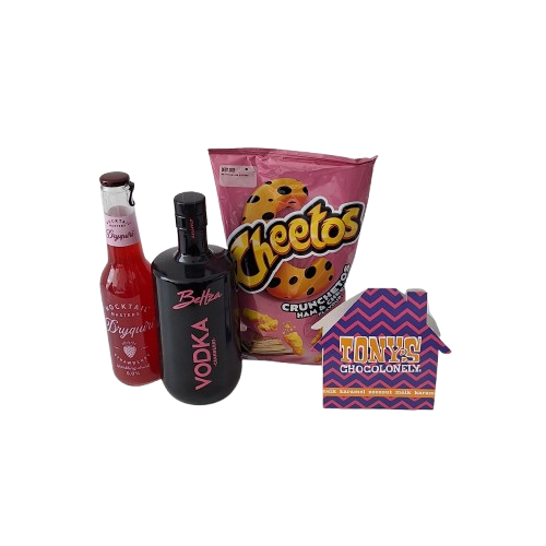 Vier de feestdagen met een vleugje roze flair. De frisse Beltza Vodka Cranberry zorgt voor een levendige start, de sprankelende mocktail houdt het luchtig, en de Tiny’s chocolade en chips maken het compleet.