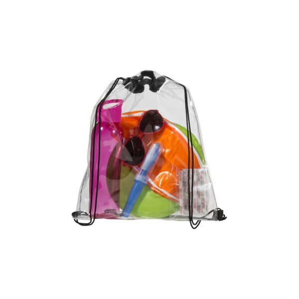 Transparante rugzak, ideaal voor veiligheidscontroles.