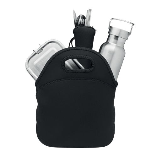 Lunchset gepresenteerd in tas van neopreen.