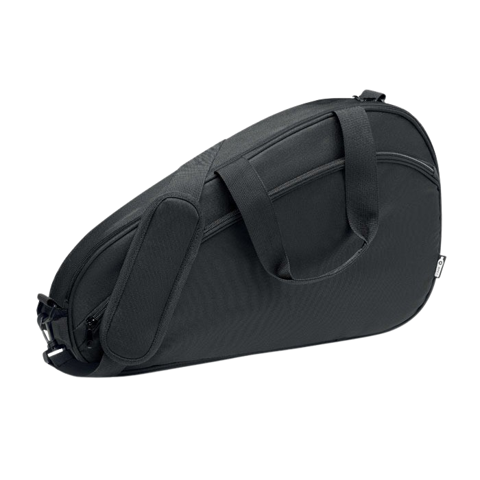 600D gewatteerd RPET draagtas voor 1 padel racket met verstelbare schouderriem en extra voorvak met rits.