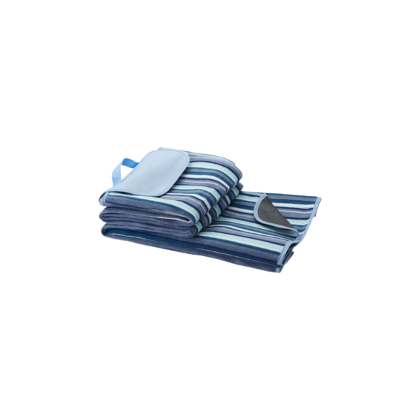 Picknickdeken met waterafstotende bekleding en handige draaggreep. Formaat 160 x 125 cm. Polyester fleece.
