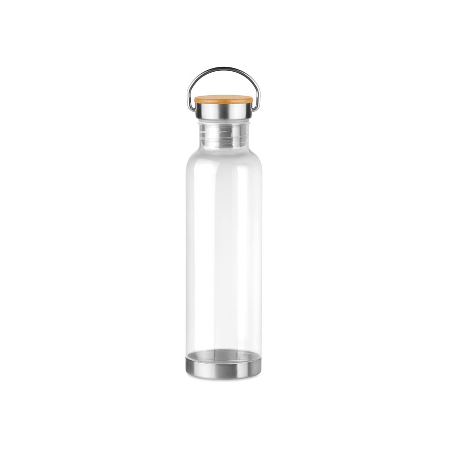 Drinkfles van stevig tritan, BPA-vrije, met RVS bodem en dop met bamboe. Inhoud 800 ml. Bamboe is een natuurlijk materiaal, waardoor kleur per item kan verschillen. Afmeting 7×26 cm. in diverse kleuren leverbaar, bedrukking rondom mogelijk en gravering op de dop.