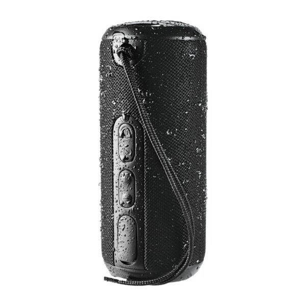 Rugged waterbestendig Bluetooth speaker. Geniet van je favoriete muziek ongeacht je locatie! Neem de Rugged Fabric Waterproof Bluetooth-speaker mee naar het zwembad, tijdens het wandelen naar een outdoor-feestje. De output van 10 watt (2 x 5W) en digitale geluidsprocessor is in staat elke locatie met hoge kwaliteit geluid te vullen. De Rugged Fabric Waterproof Outdoor Bluetooth speaker heeft een waterdichtheid van IPX6. Dit betekent dat de speaker buiten kan blijven staan in een regenstorm of in het water kan vallen zonder beschadigd te raken. Ook is een micro-USB-oplaadkabel en draagkoord inbegrepen. Bereik van Bluetooth is 10 meter. Geniet tot 4 uur lang van muziek bij max volume met slechts eenmaal opladen. Oplaadtijd is 2,5 uur. Het heeft een ingebouwde microfoon en muziekbediening voor hands-free bediening. ABS plastic. Afmeting: 17,5×6 cm.
